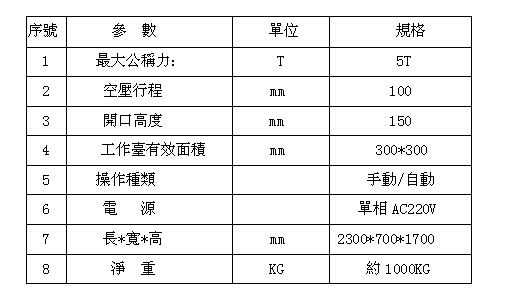 3:機械安全部分工作臺經(jīng)過真空調(diào)質(zhì)處理,表面電鍍處理長期使用不變形,不生銹。裝卸模具之設(shè)計簡單,方便,快捷。操作面可加裝紅外線安全裝置。雙手同步操作,急升保護裝置。