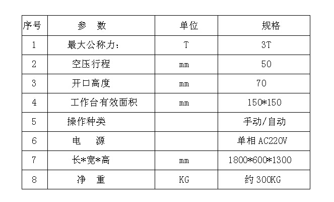 4:工控部分控制方式分為手動(dòng)/半自動(dòng)兩種,手動(dòng)模式方便模具安裝校正,半自動(dòng)模式可控制保壓時(shí)間,適用于多種產(chǎn)品所需的壓制時(shí)間要求。