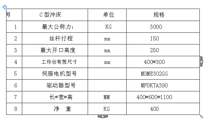 二:機(jī)器設(shè)備優(yōu)勢在于:1提高生產(chǎn)效率。行程長度設(shè)定為生產(chǎn)必要的下限值?删S持與加工內(nèi)容相適合的成型速度。2制品精度高。通過閉環(huán)反饋控制,始終保證下死點(diǎn)的精度。抑制產(chǎn)品出毛邊,防止不良產(chǎn)品的產(chǎn)生。3噪聲低、模具壽命長。通過低噪音模式(即降低滑塊與板料的接觸速度),與通過機(jī)械壓力機(jī)相比,大幅減少噪音。而摸具的振動小,壽命長。4滑塊運(yùn)動的可控制性。使用者可利用此特點(diǎn)編制出適合于加工工藝的滑塊運(yùn)動方式,有效提高產(chǎn)品的精度和穩(wěn)定性,提高摸具壽命及生產(chǎn)率,而且可實(shí)現(xiàn)靜音沖裁,甚至可以擴(kuò)大加工范圍(如鎂合金的沖壓加工等)。適于沖裁、拉深、壓印和彎曲等工藝,以及不同材料的特性曲線。如可將滑塊運(yùn)行停止保壓,其目的是提高制件的成型質(zhì)量。5節(jié)能環(huán)保。取消了傳統(tǒng)機(jī)械壓力機(jī)的飛輪、離合器等耗能元件,減少了驅(qū)動件,簡化了機(jī)械傳動結(jié)構(gòu);潤滑油量少,行程可控;由于電力消耗少,因此運(yùn)行成本也大幅度降低。